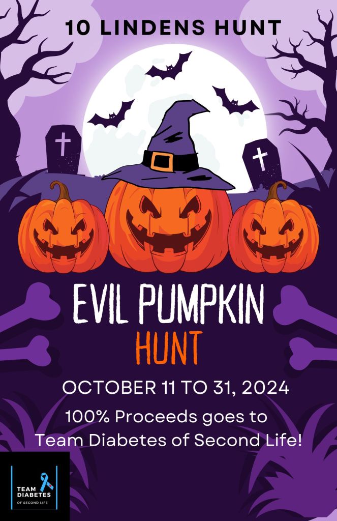 The 2024 Evil Pumpkin Hunt is the official hunt of Scare Me Silly! All items are 10 lindens with 100% of the proceeds going to Team Diabetes of Second Life! Below are a list of participating merchants and prizes.
