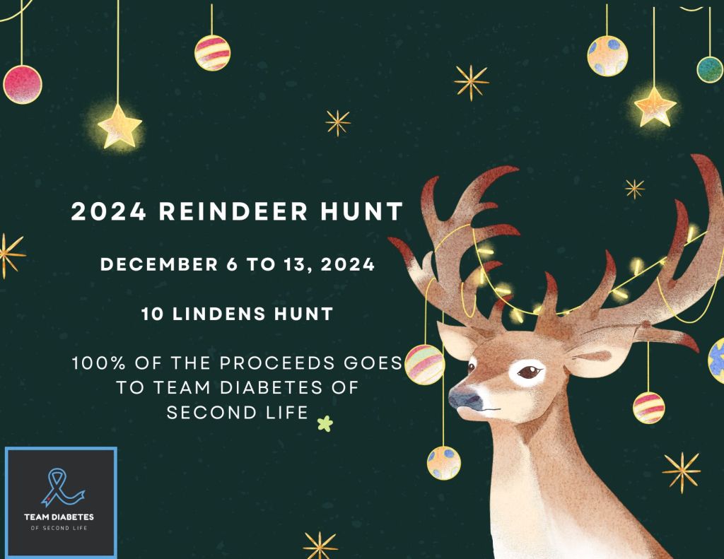 The 2024 Reinder Hunt is the official hunt at the 2024 Winter Showcase! All hunt items are 10 lindens with 100% of the proceeds going to Team Diabetes of Second Life!